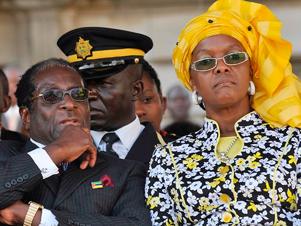 Роберт Мугабе и его жена Грейс Но всё же Мнангагва остается для автора загадкой. На уровне риторики Мнангагва делает вполне разумные, с точки зрения автора, утверждения. Например, он пообещал изменить закон о том, что как минимум 51% бизнесов должны принадлежать либо государству, либо чернокожему населению Зимбабве. Он выражал намерение компенсировать белым фермерам конфискацию более 4 000 ферм в период начиная с 2000 г. и восстановить как белых, так и чернокожих фермеров в правах. Также он пообещал честные выборы и выразил уверенность, что его партия в случае проигрыша примет исход как есть.