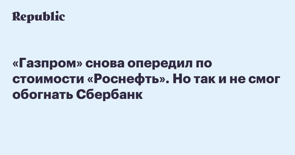 «Газпром» снова опередил по стоимости «Роснефть». Но так и не смог обогнать Сбербанк