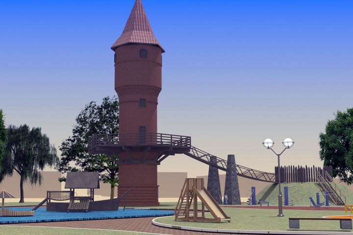 И еще одна детская площадка, которую должен был возвести застройщик. И еще один сквер с башней.