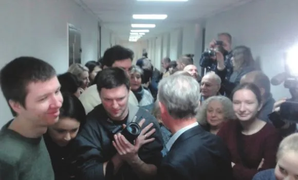 Интеллектуалы из Москвы и Петербурга, сочувствующие Юрию Дмитриеву и полагающие, что обвинение по его делу абсурдно и носит откровенно сфабрикованный характер, приезжают на каждое заседание для моральной поддержки исследователя. На сей раз «гражданский десант» в Петрозаводск включал около 20 москвичей. В их числе был и корреспондент ТрВ-Наука Алексей Огнёв.