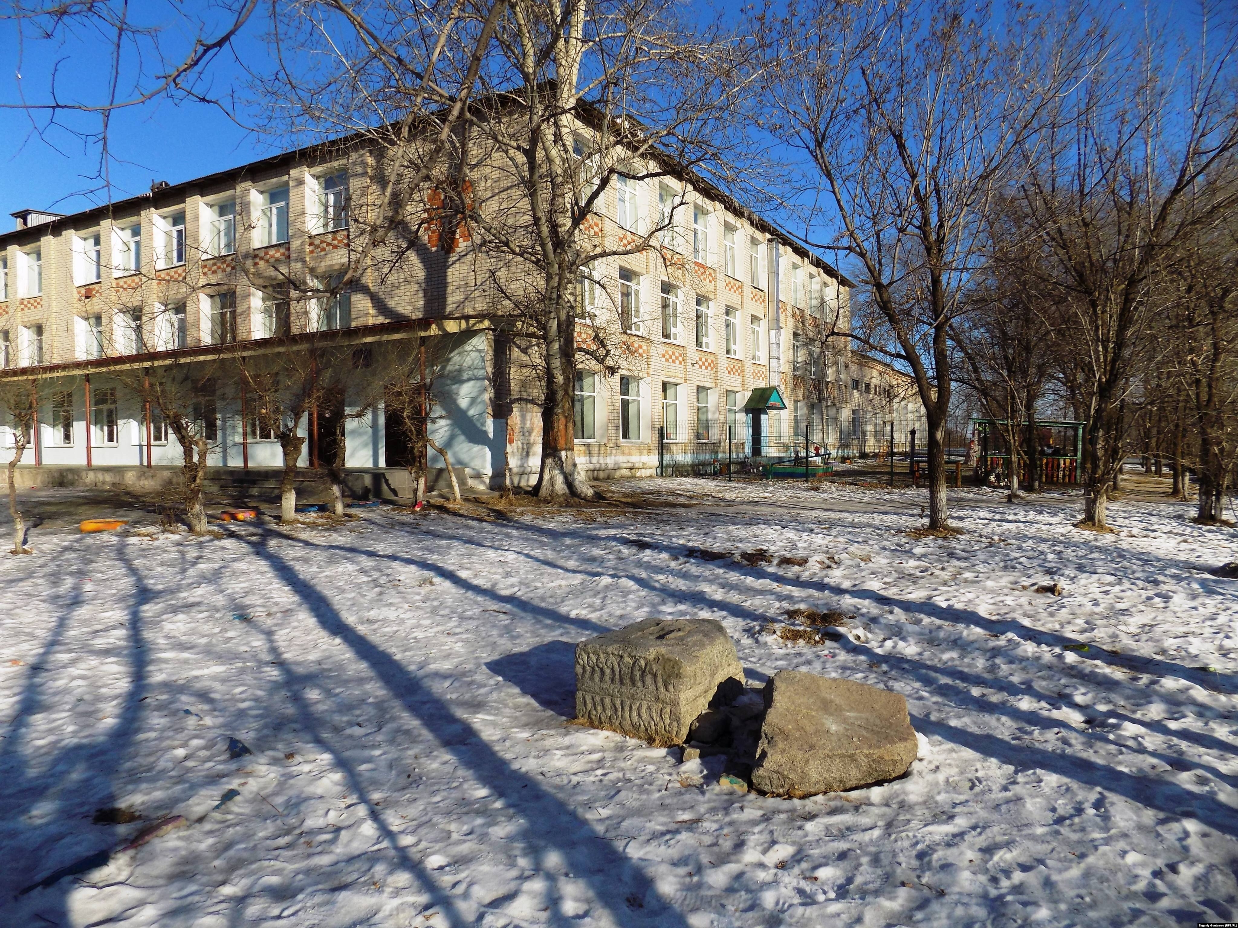 Предварительно "пошелестев" страницами интернет-архива газеты "Амурская правда" (коллеги, спасибо!), знаю, что памятный камень установлен в сквере возле школы. Приехав в Волково "утренней лошадью", иду искать этот сквер. Методом народного опроса устанавливаю, что на месте сквера построен многоквартирный дом, а камень перенесен на территорию школы. Захожу во двор школы, и у входа в здание вижу разрушенный памятный знак. То ли строители перетащили сюда камень, да так и бросили. То ли уже потом вандалы сделали свое черное дело.