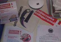На фото с обыска, опубликованных "Кремлевской прачкой", изображены агитация к "забастовке избирателей", листовка с программой "Нового величия" и футболка с анархистской символикой.