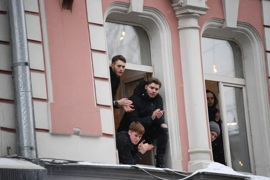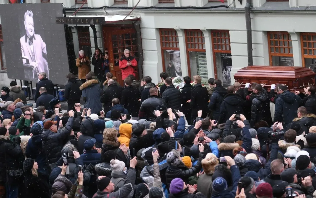По старой традиции похорон артистов толпа в Камергерском аплодирует, аплодирует.