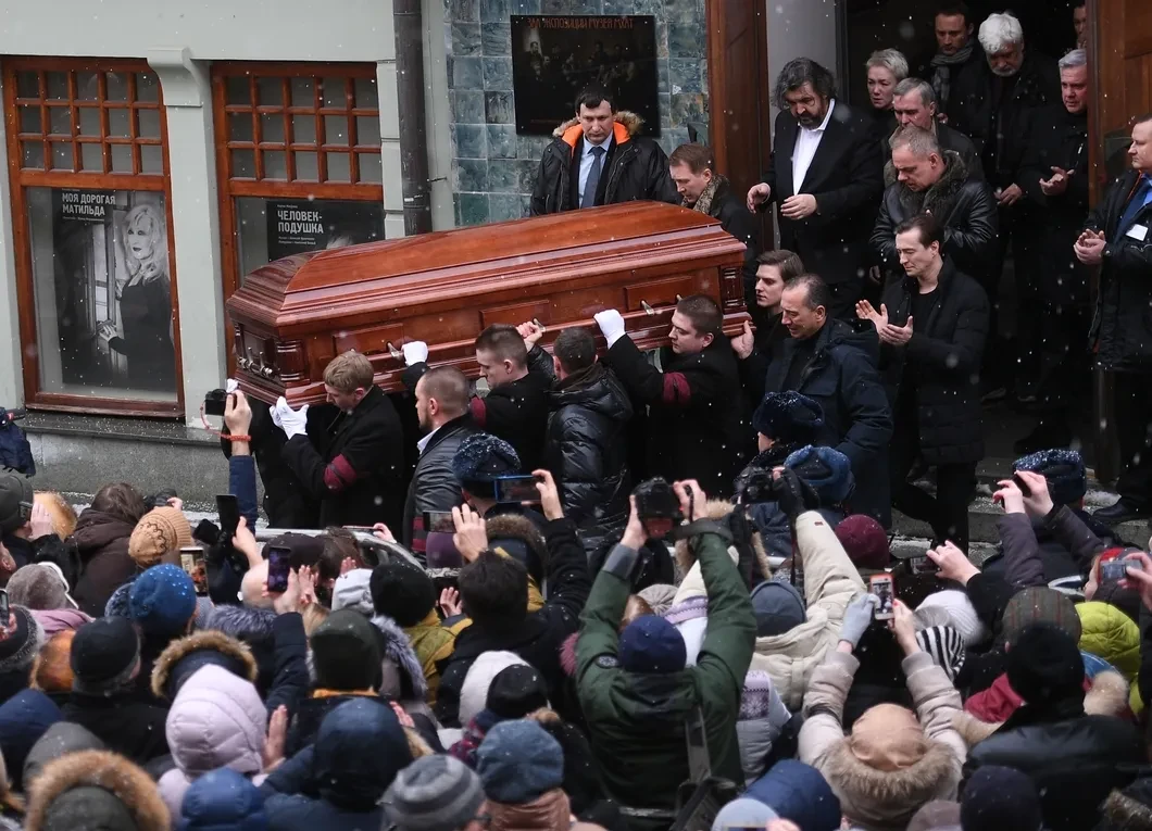 Все только что вышли из театра. Там, на гражданской панихиде, говорили Анатолий Смелянский, Марк Захаров, Сергей Юрский, Евгений Миронов, Владимир Машков. Молчал у гроба президент Путин. Сменялись в почетном карауле люди всех поколений: от грандов «Современника» и «Табакерки» до студентов Школы-студии МХАТ.