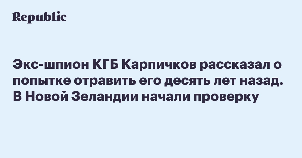 Экс-шпион КГБ Карпичков рассказал о попытке отравить его десять лет назад. В Новой Зеландии начали проверку