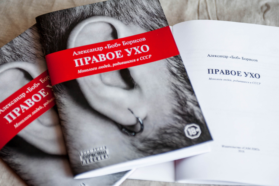 В 2010 году вышла моя первая книга «Егоркина былина и др.», в которой были отражены внутренние переживания, пронизанные творчеством Егора Летова. Жанр этого произведению я охарактеризовал как трэш-реализм, потому что там не было ни единого слова неправды. Такой довлатовский подход: собрать истории знакомых и друзей и вписать их в единую канву. С тех пор миновало много времени, и периодически мне, конечно, задают вопрос: «Когда ждать следующую книгу?». Были новые рассказы, что-то писалось, чаще нет, потому что мне была необходима какая-то внутренняя драма, но ее особо не было. В какой-то мере это даже хорошо — что не писалось. Но теперь у меня есть ответ для моих читателей, который, как я и предполагал, вызовет не очень однозначную реакцию. «Фу, ты опять про ЛГБТ», написал в комментариях мне один очень хороший знакомый активист. Да! «Правое ухо. Монологи людей, родившихся в СССР» — это книга-интервью с людьми из ЛГБТ-сообщества. И это тот самый реализм, без приставки «трэш». Потому что, прочитав их истории, становится ясно, что слово «трэш» в данном контексте неуместно. Сюда больше подойдет слово «ужас».