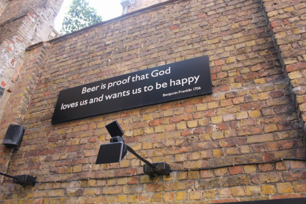 Вывеска в баре The Beer Wall: «Пиво — доказательство, что бог любит нас и хочет, чтобы мы были счастливыми»