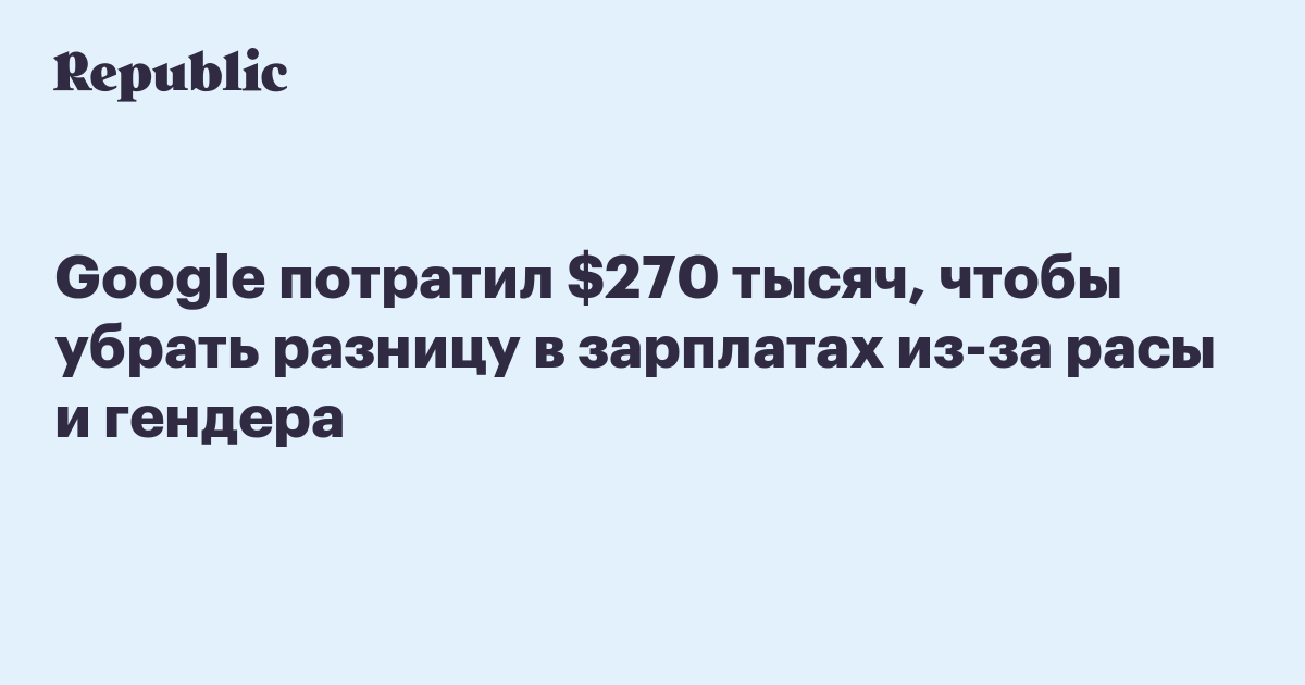 Google потратил примерно $270 тысяч на то, чтобы уравнять зарплаты сотрудников и убрать дискриминацию по расе или гендеру. Об этом сказано в блоге компании:
