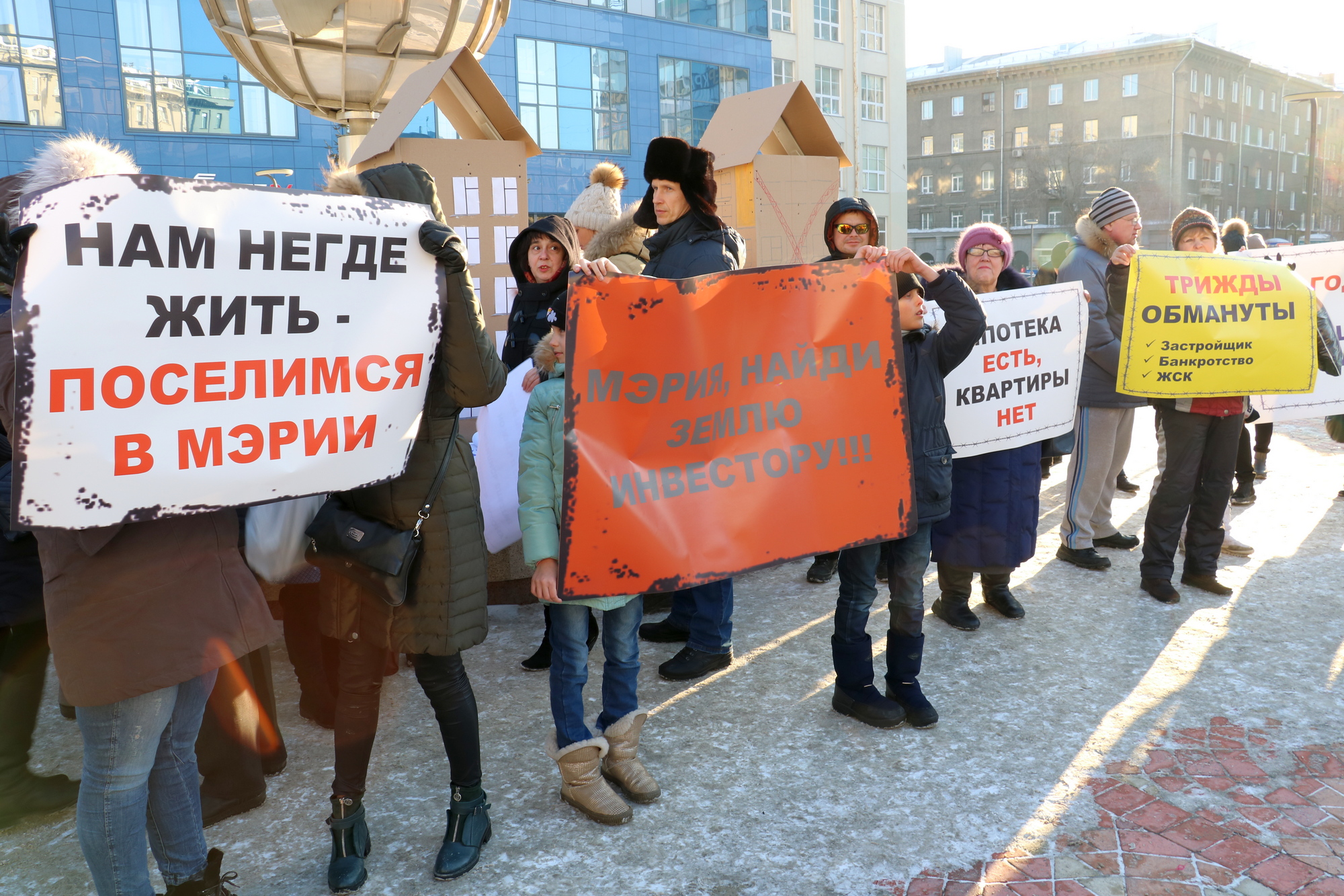 Новосибирск: обманутые дольщики построили дом из картонных коробок