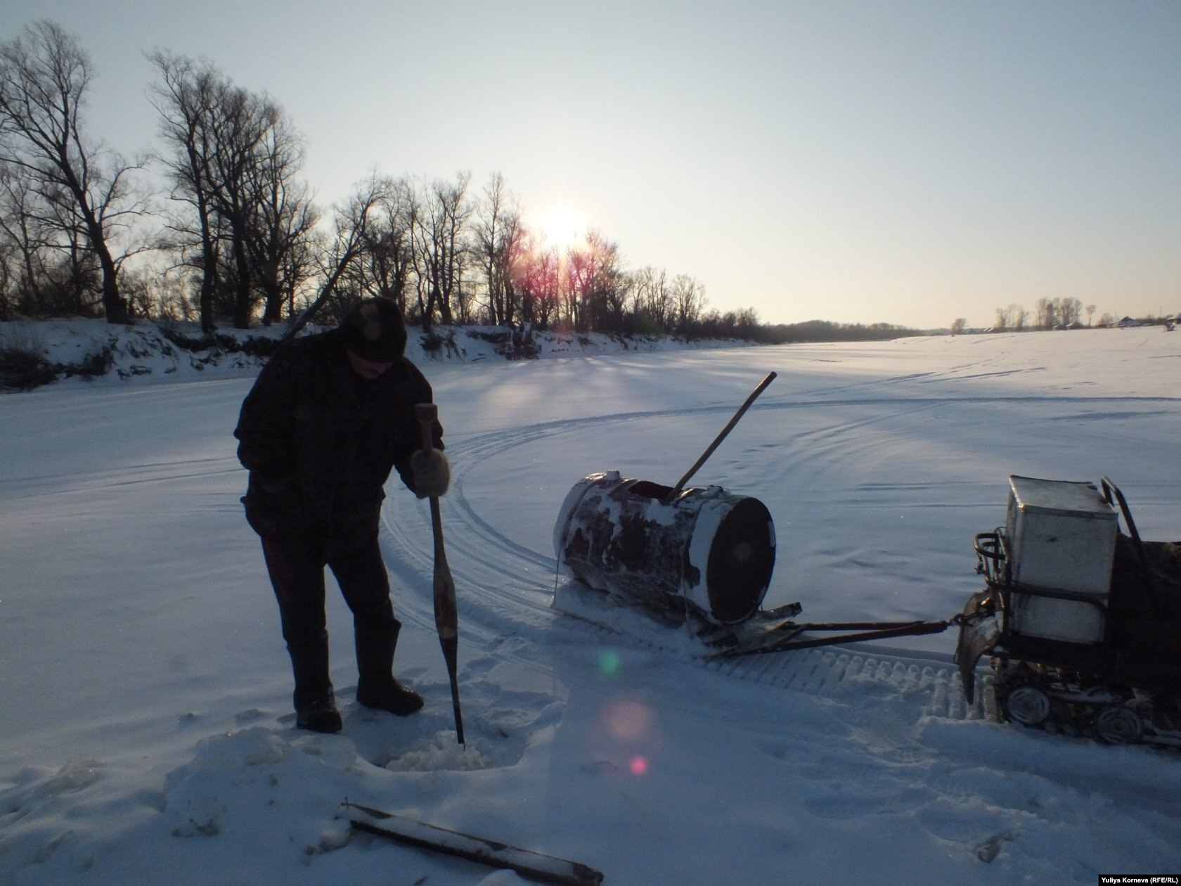 – Зимой сети не воруют, а вот летом тоска, как кемеровские начинают ездить, – рассказывает Сергей Сычин и греет у ведра с горящими деревяшками единственную руку. Другую – сам себе случайно в молодости прострелил. – Приезжаешь: сетей нет. Наши такого не сделают, наши все знают, что если поймают, то макают в лунку, до тех пор пока он не поймет, что не надо это делать.