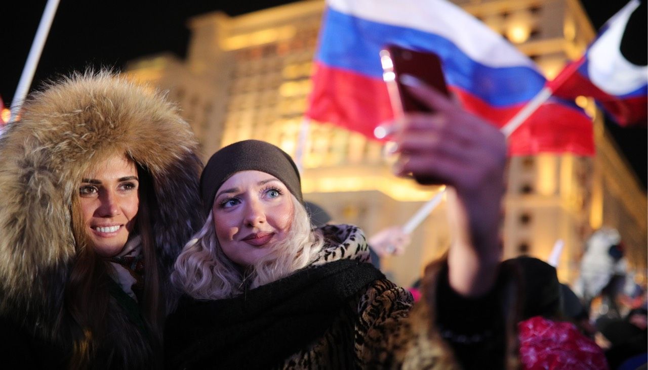 Вечером 18 марта на Манежной площади прошел концерт, формально посвященный годовщине присоединения Крыма. В действительности, как и шесть лет назад — в марте 2012 года, это был митинг в честь победы Владимира Путина на выборах. Президент вышел на сцену, поблагодарил собравшихся и пообещал, что Россия обречена на успех.