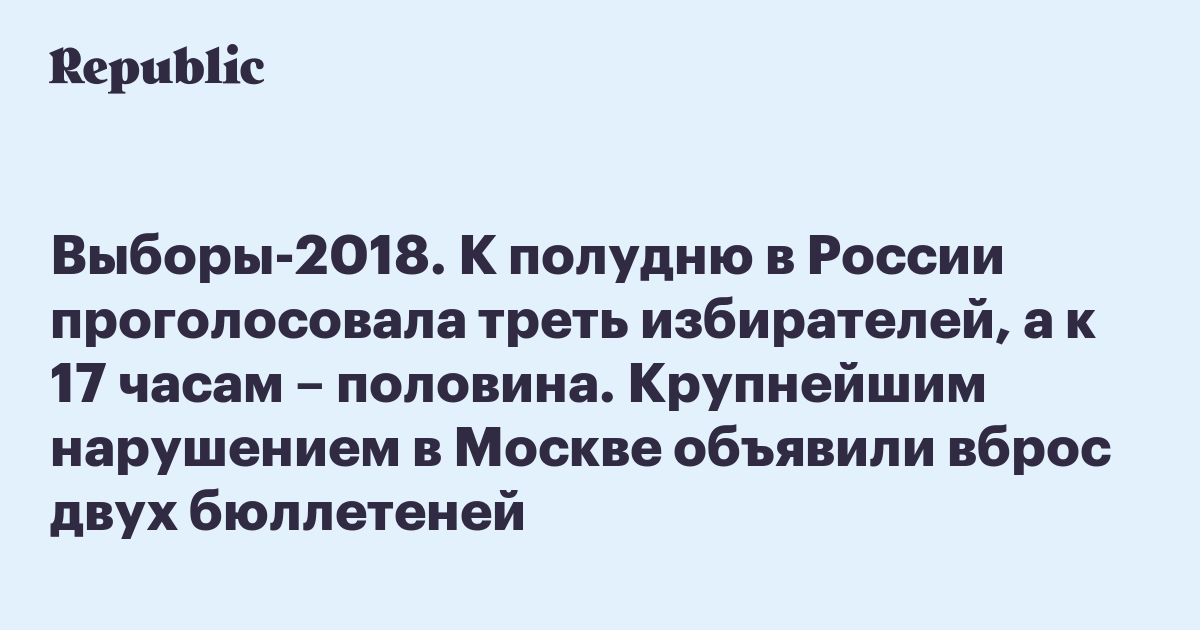 Выборы-2018. К полудню в России проголосовала треть избирателей, а к 17 часам – половина. Крупнейшим нарушением в Москве объявили вброс двух бюллетеней