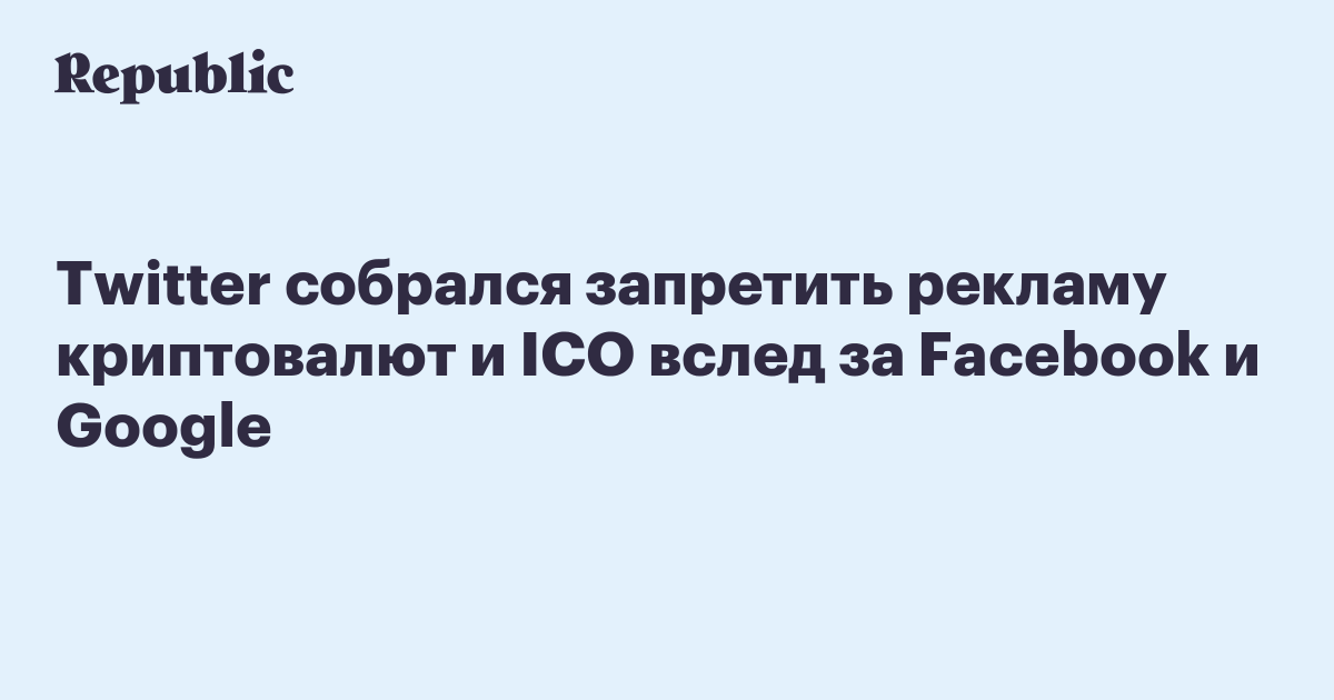 Twitter собрался запретить рекламу криптовалют и ICO вслед за Facebook и Google