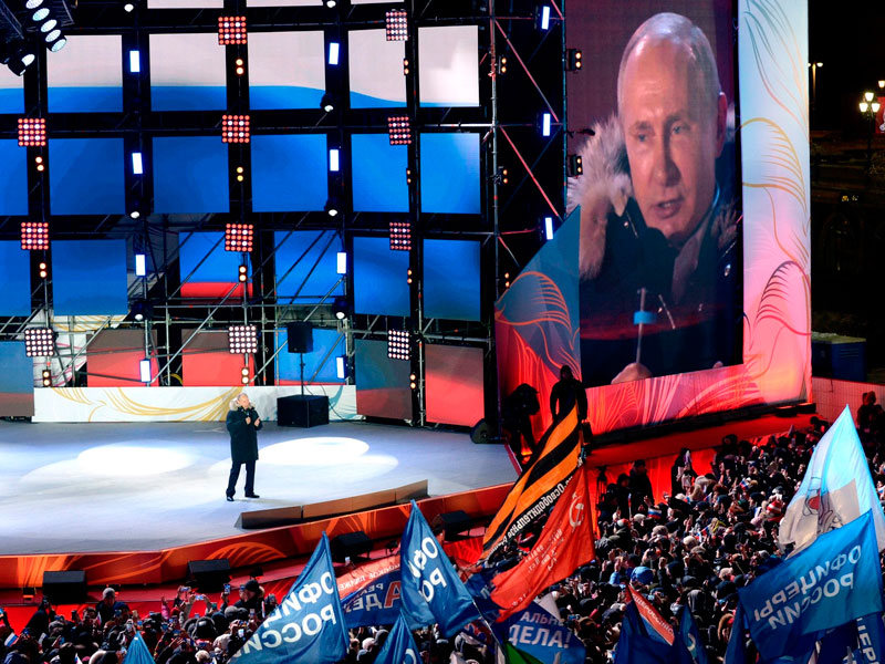 В.Путин на митинге / kremlin.ru«Мы со своей стороны будем делать все для того, чтобы все спорные ситуации с нашими партнерами были урегулированы политико-дипломатическими средствами. При этом, конечно, само собой разумеется, мы всегда из этого исходили, и будем исходить, будем бороться за обеспечение своих национальных интересов. Будем исходить из того, что будем делать всю эту работу с нашими партнерами на взаимоприемлемой основе с уважением друг к другу и нашим национальным интересам», — сказал Путин.