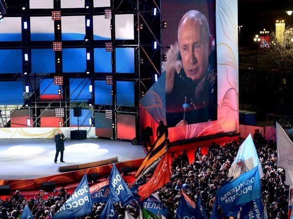 Владимир Путин отпраздновал победу на выборах, выступив поздно вечером перед сторонниками на Манежной площади Москвы.
