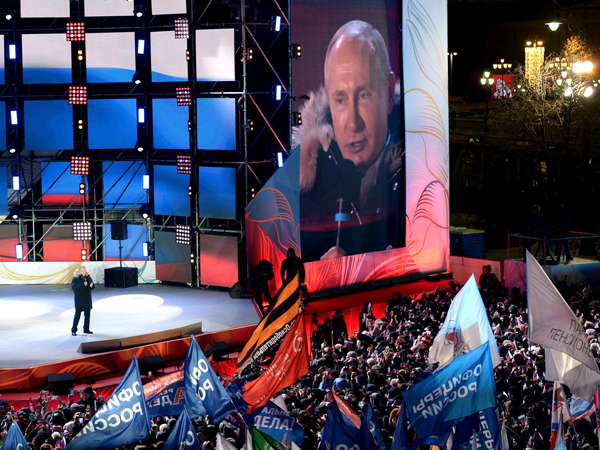 Владимир Путин после завершения выборов отвечает на вопросы журналистов kremlin.ru 18 марта в России состоялись выборы президента. На них в первом же туре с огромным перевесом победил действующий президент России Владимир Путин. После обработки 99% бюллетеней его результат составил 76,65%. Это означает, что за него проголосовали более 55 миллионов россиян, отмечается в материалах Центральной избирательной комиссии, опубликованных на ее сайте.