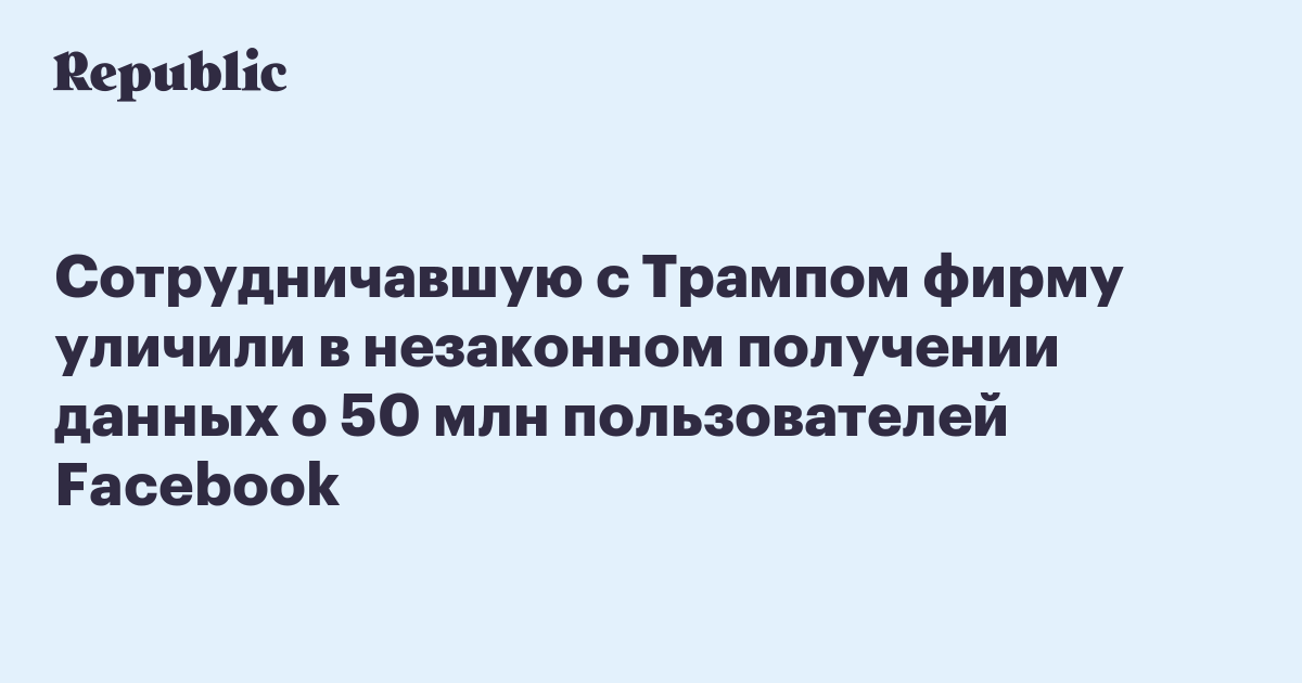 Сотрудничавшую с Трампом фирму уличили в незаконном получении данных о 50 млн пользователей Facebook
