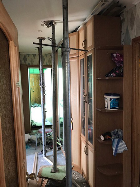 В нашей квартире покосились стены, везде трещины, квартира залита водой. В одной комнате и коридоре стоят подпорки.