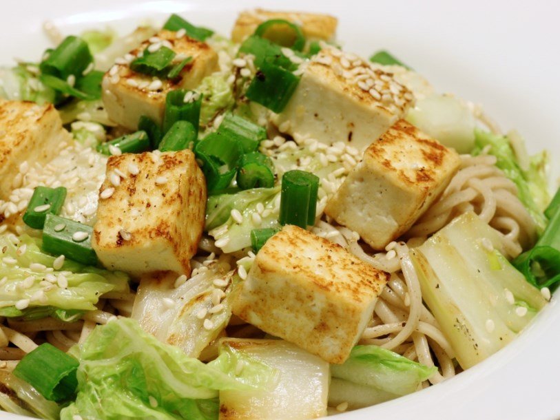 Тофу, известный также как «соевый творог», получается сбраживанием белка, содержащегося в семенах сои – растения семейства бобовых. Для этого их превращают в однородную массу, которая замачивается водой, варится, процеживается и остужается. После добавления хлорида магния, лимонной кислоты или просто морской воды белок свертывается. Конечный продукт прессуется. Он имеет белый цвет и напоминает по плотности мягкий сыр или творог. Тофу едят свежим, жареным, вареным, делают из него лапшу, используют в качестве начинки в пирогах и изготавливают из него многие другие блюда.