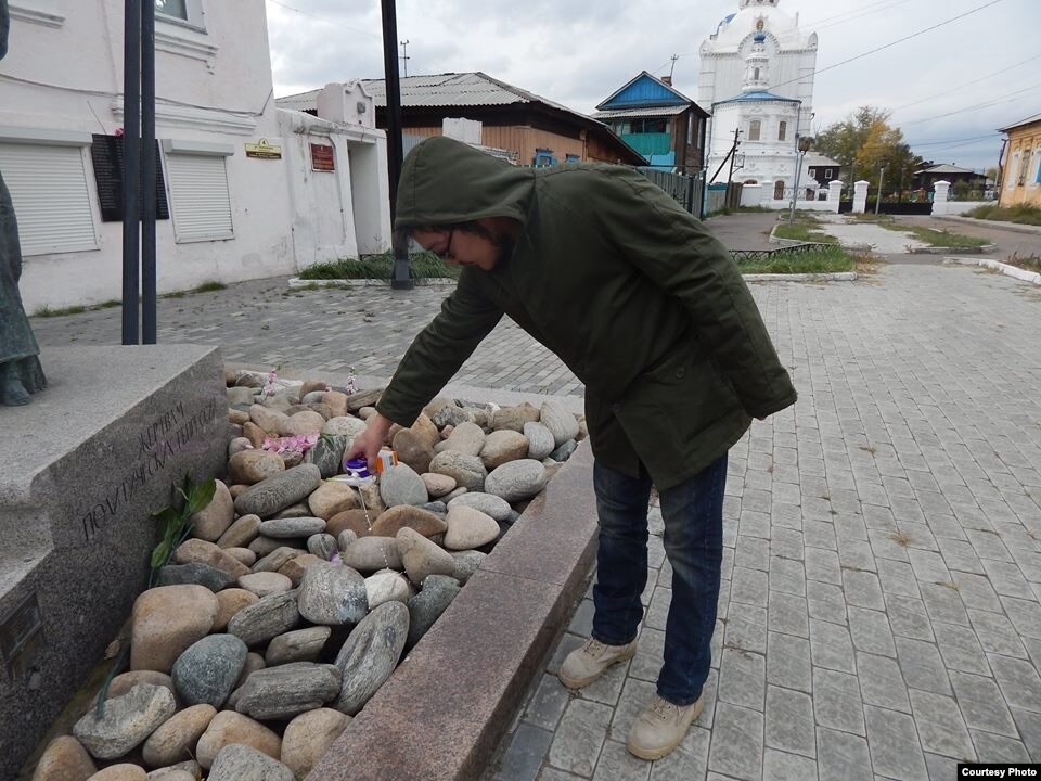 Так получилось, что мы с ним в тот год были единственными, кто вспомнил об этой трагической дате. Он же помнил о ней всегда и напоминал нам, что этот день нужно отмечать. А традиция была положена солнечным осенним днем 26 сентября 2005 года, когда мы все – участники конференции, посвященной укрупнению регионов и приуроченной ко Дню раздела республики, прошли маршем от площади Советов, где устроили флешмоб с плакатами против укрупнения, причем каждый держал в руках лишь одну букву (наивная сегодня уловка – а тогда казалось, что мы таким образом можем оспаривать задержание) к памятному камню на улице Линховоина. Памятника жертвам политических репрессий тогда еще не было. В тот день на конференции в Республиканской библиотеке выступал Гарри Каспаров и сказал, что в демократической стране проблема раздела республики и вопрос о восстановлении ее территориальной целостности решались бы демократическим путем. Потом, поздней осенью к нам приезжала светлой памяти Галина Кожевникова из центра “Сова” с семинаром для журналистов и сказала, что на фоне беспредела с саботажем выступлений Каспарова по всей стране, когда в частных кафе вдруг вырубали свет, Улан-Удэ оказался уникальным местом, где его встретили с помпой – конференц-зал был полон шахматиcтов всех возрастов.