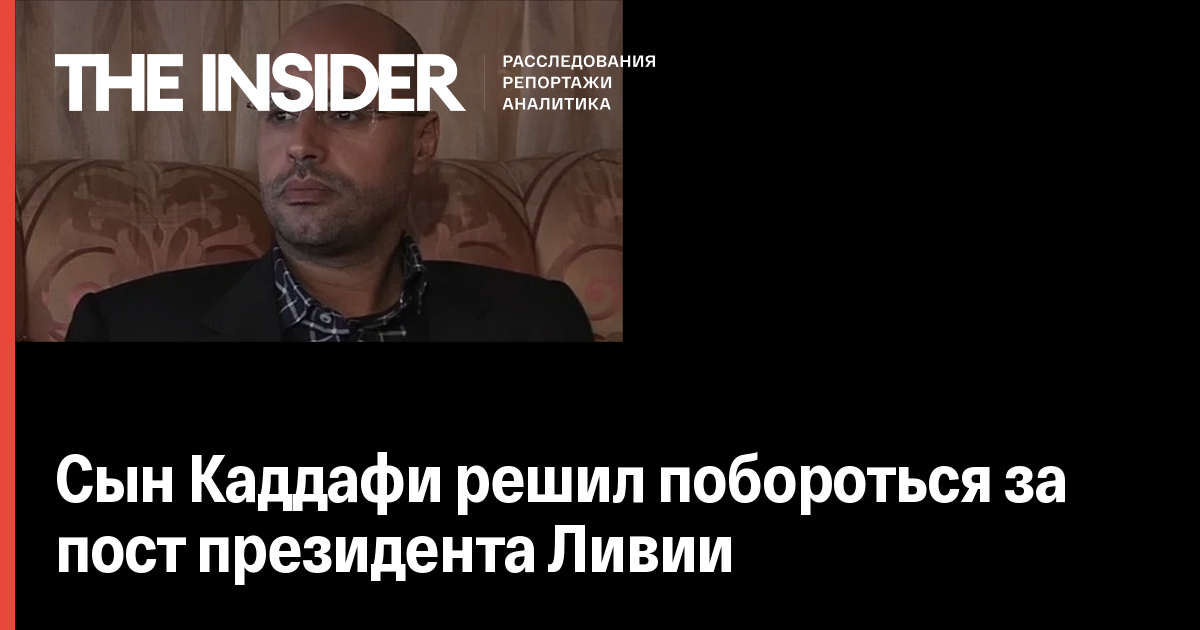 Сын бывшего ливийского лидера Муамара Каддафи Сейф аль-Ислам выдвинул свою кандидатуру на пост президента Ливии, сообщает «Интерфакс».