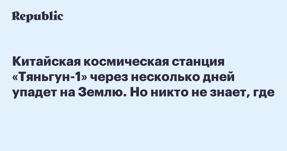 Китайская космическая станция «Тяньгун-1» через несколько дней упадет на Землю. Но никто не знает, где