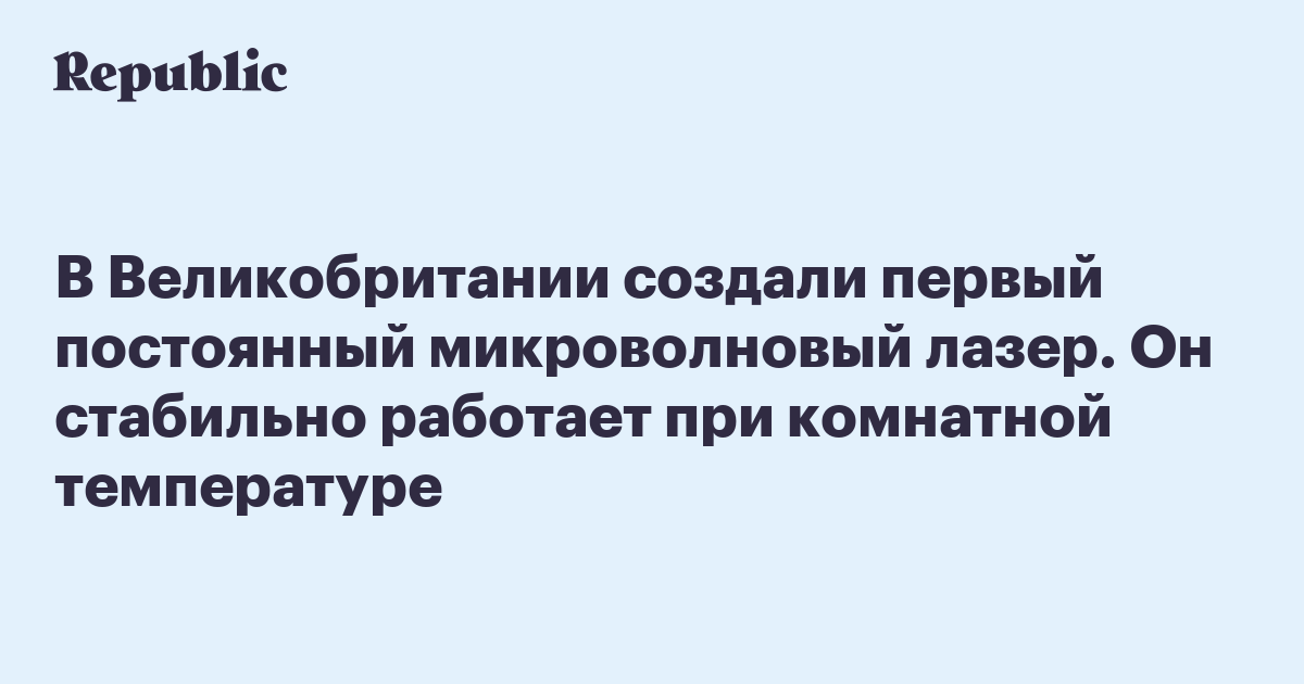 В Великобритании создали первый постоянный микроволновый лазер. Он стабильно работает при комнатной температуре