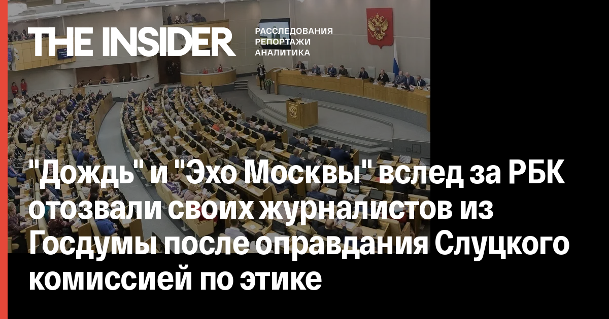 "Дождь" и "Эхо Москвы" вслед за РБК отозвали своих журналистов из Госдумы после оправдания Слуцкого комиссией по этике
