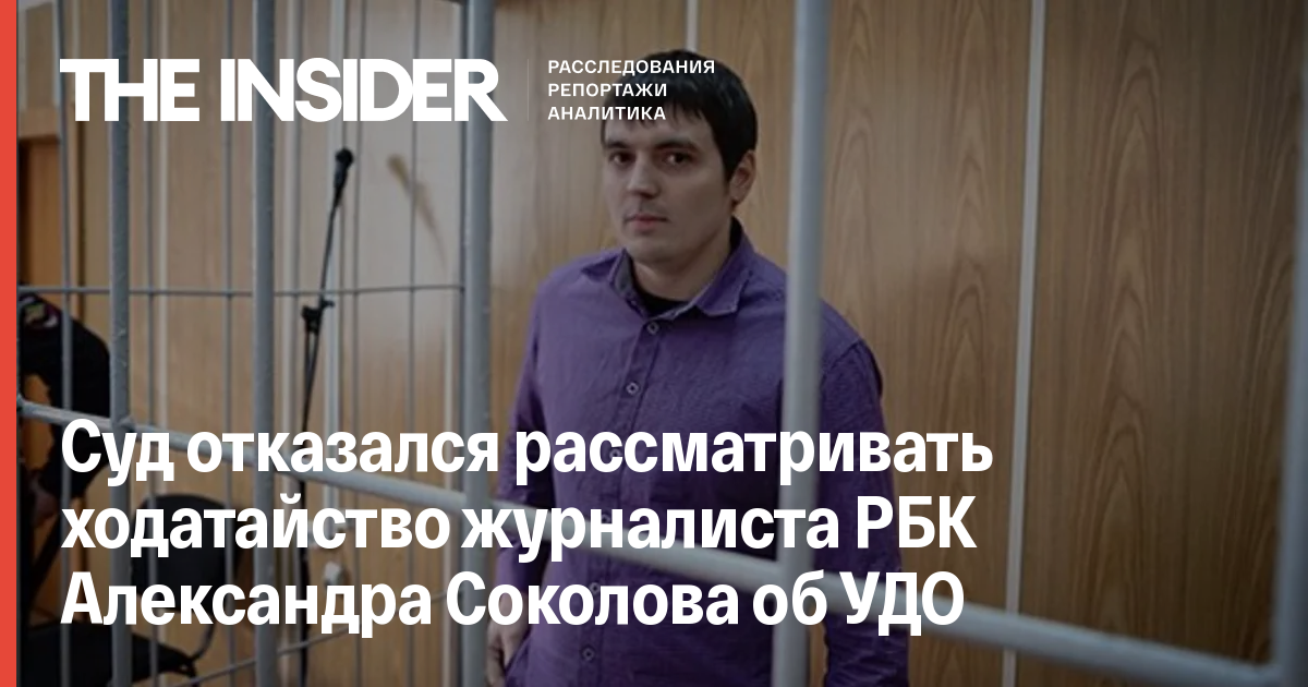 Тверской суд Москвы отказался рассматривать ходатайство об условно-досрочном освобождении журналиста РБК Александра Соколова, сообщает РИА «Новости».