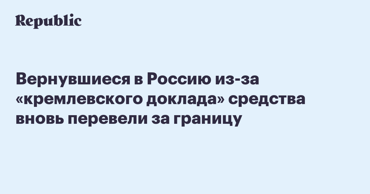 Вернувшиеся в Россию из-за «кремлевского доклада» средства вновь перевели за границу