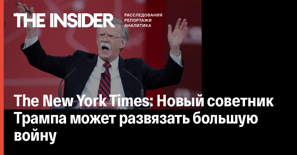 Назначенный Трампом советник по национальной безопасности, предпочитающий дипломатии военные решения, может привести страну к войне, которая станет катастрофой для нее и всего мира, говорится в редакционной статье The New York Times. The Insider предлагает полный перевод статьи.