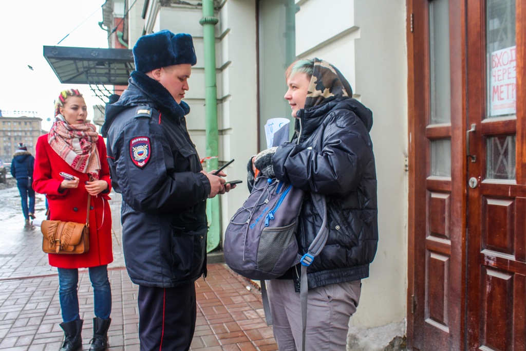 Акция прошла без происшествий. Полицейский лишь проверили документы у одной из участниц.
