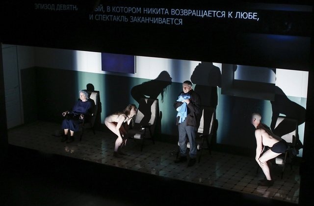 Собственно, это короткий пересказ рассказа Платонова. Только на сцене сделано это было с помощью кукол. У Сергея Чехова подход противоположный. Он вместе с художником Анастасией Юдиной, композитором Владимиром Бочаровым, артистами Виктором Яковлевым, Илоной Гончар, Юрием Новохижиным, Надеждой Чепайкиной и Денисом Золотарёвым словно бы маскирует текст Платонова. Прячет его за всевозможными слоями. В спектакле Сергея Чехова на сцене нет ни главного героя – Никиты, ни его отца, ни Любы…