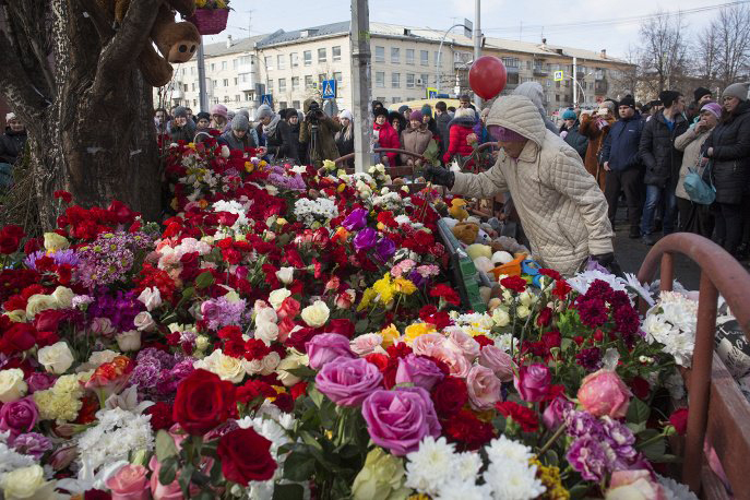 К сгоревшему центру жители города в знак скорби уже несут цветы и мягкие игрушки. Официальный траур в области по погибшим продлится три дня — 27, 28 и 29 марта.