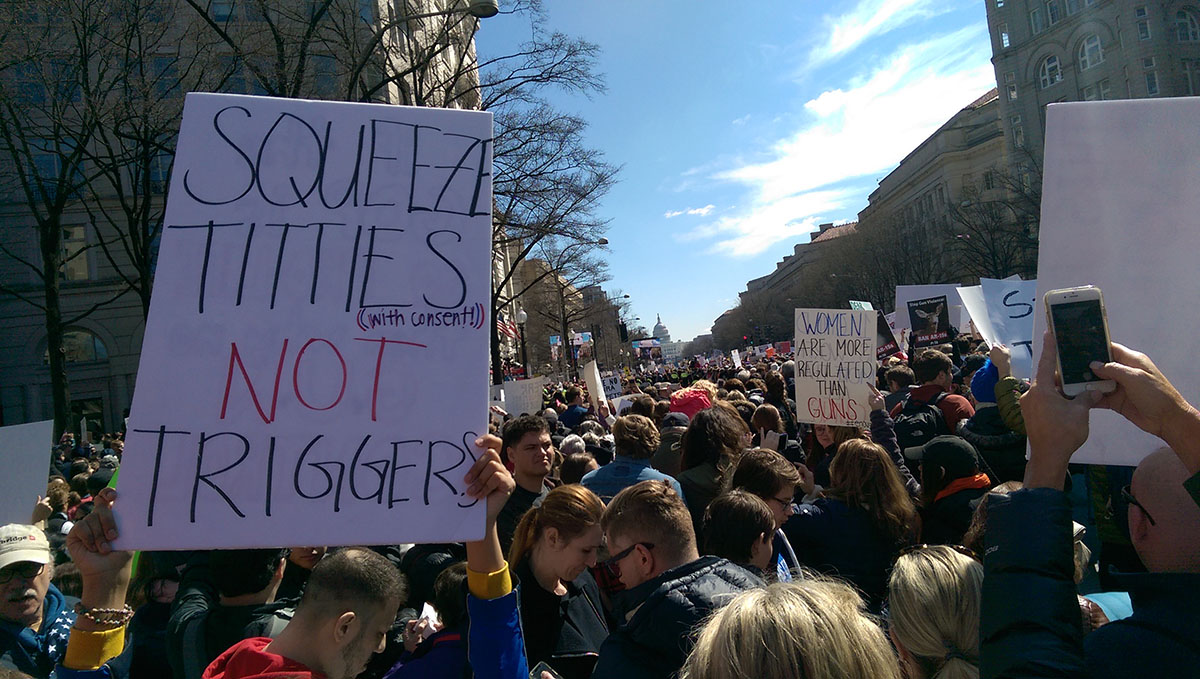 Многие из собравшихся также требовали изменить поправку, вокруг которой идет так много споров. «Мы меняем президентов каждые 4 года. Почему мы не меняем Вторую поправку 227 лет?» — гласил один из плакатов.