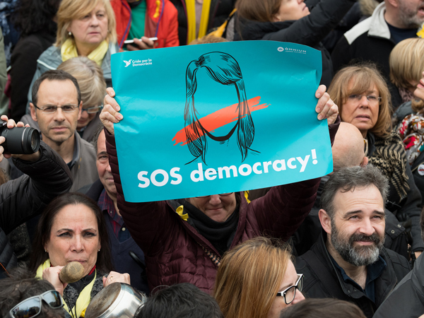 Демонстрация против ареста Пучдемона. Каталония. 25.03.2018г. Assemblea.cat/flickr.com Задержание Пучдемона вызвало протест в Барселоне и других городах Каталонии. Тысячи граждан вышли на улицы; часть протестующих стали собираться у немецкого консульства и представительства Еврокомиссии в Барселоне, отмечает автор. Некоторые немецкие политики — из левых и либералов — также выразили недовольство арестом. Представители испанского истеблишмента, наоборот, приветствовали арест, мотивируя это тем, что Пучдемон «пытается разрушить европейскую демократию».