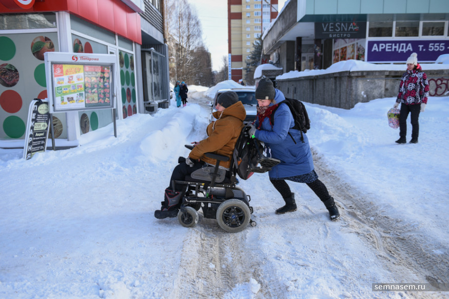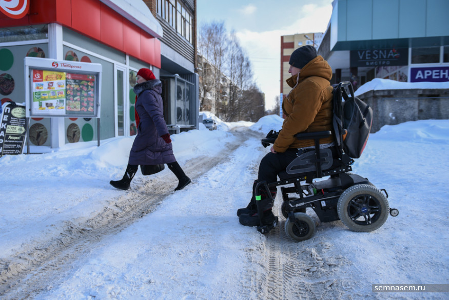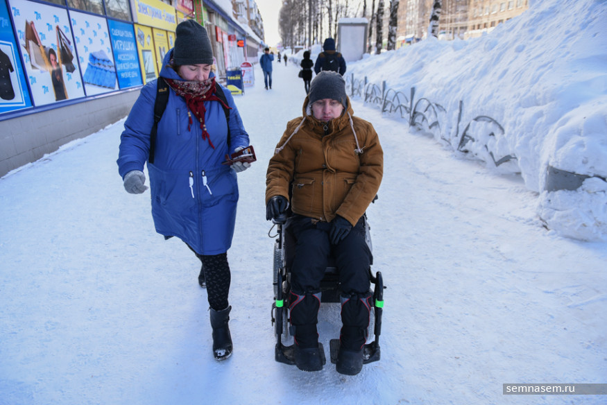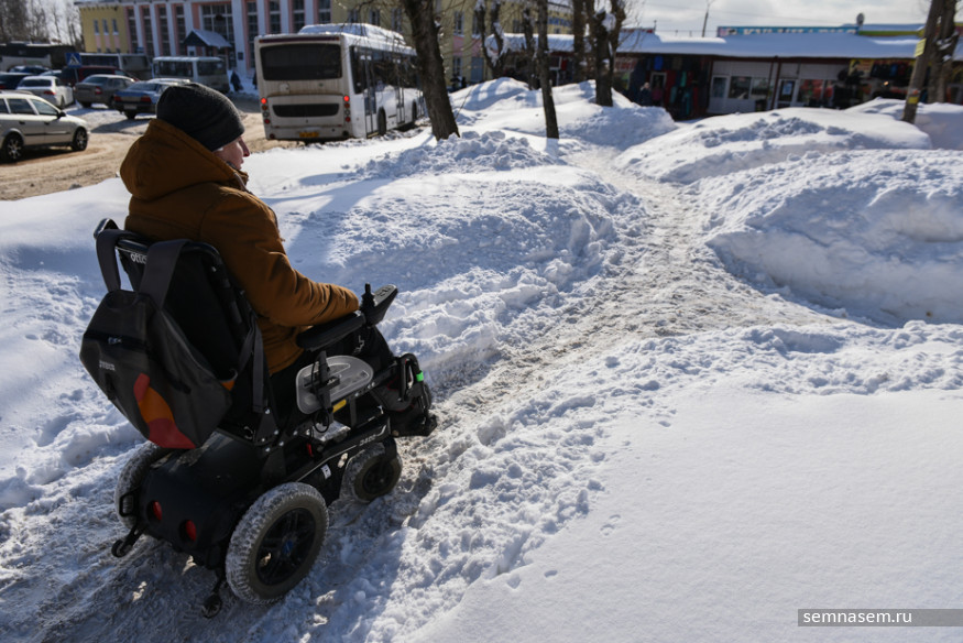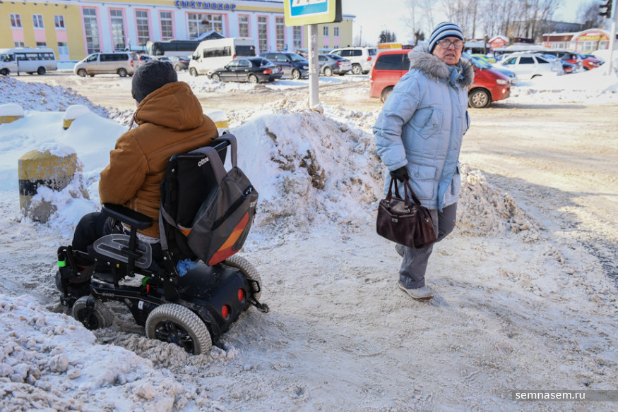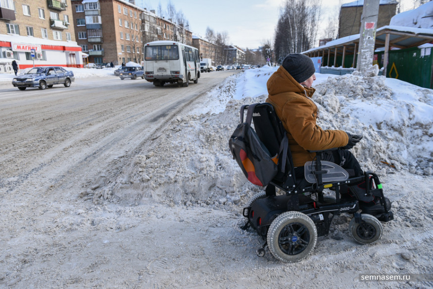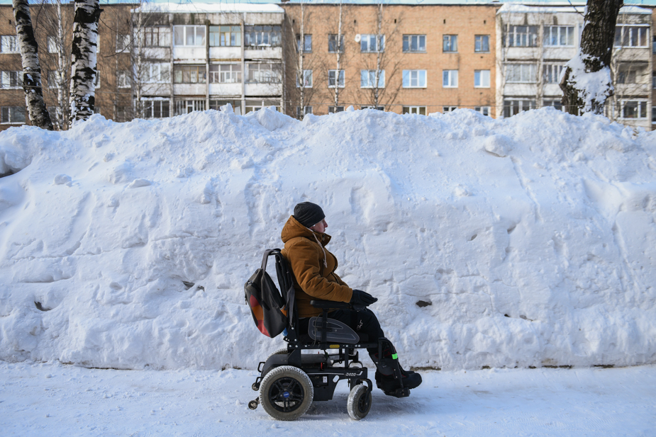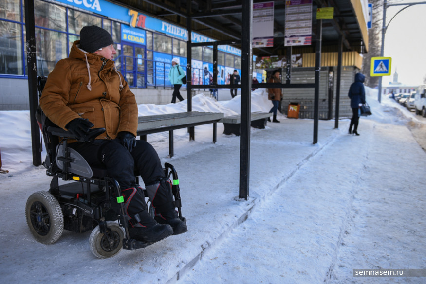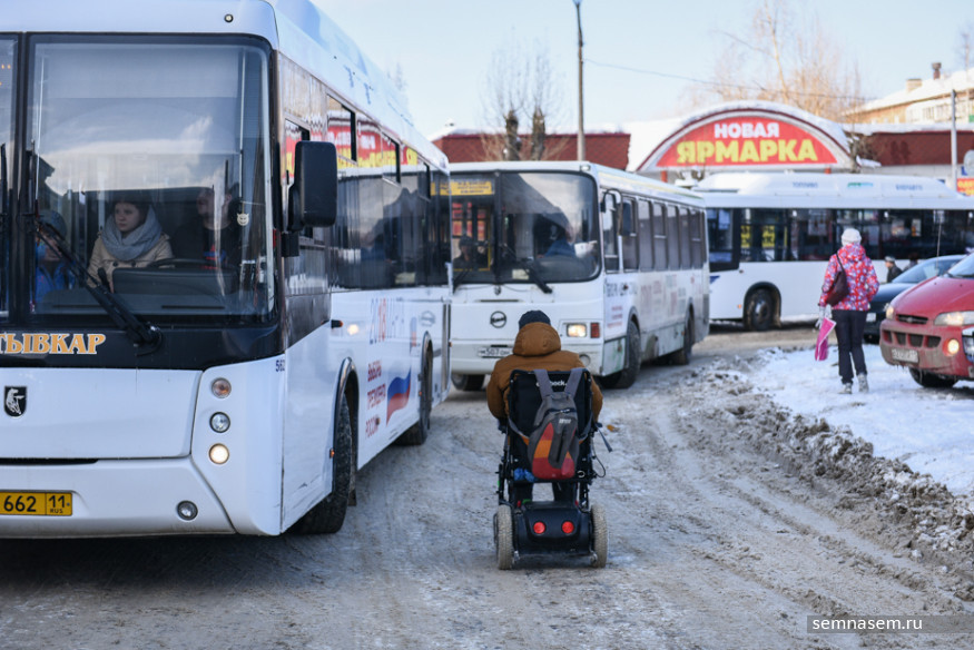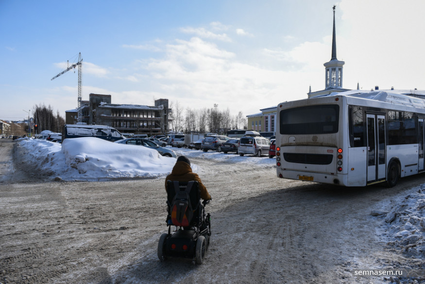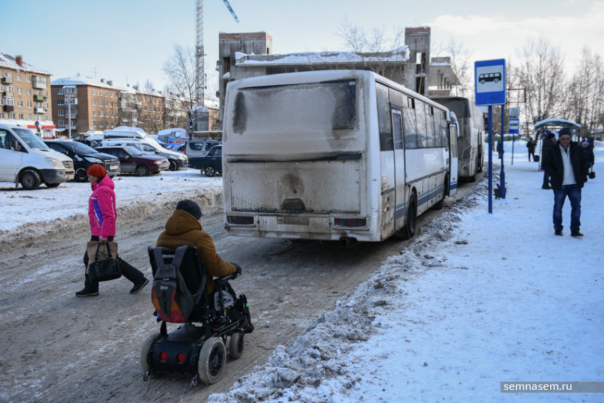 Руководитель общественной организации «Аппарель» Илья Костин оказался в инвалидной коляске в 2015 году из-за прогрессирующей болезни, но все равно говорит «я пошел» и «пришлось добираться пешком». Он часто выходит в город — в том числе, чтобы добраться в суд, где он часто выступает в качестве истца в делах по защите прав людей с инвалидностью. Зима даже небольшую прогулку превращает в рискованную полосу препятствий. Вместе с Ильей 21 марта корреспондент «7x7» отправилась проверять автобусные остановки и автобусы Сыктывкара.
