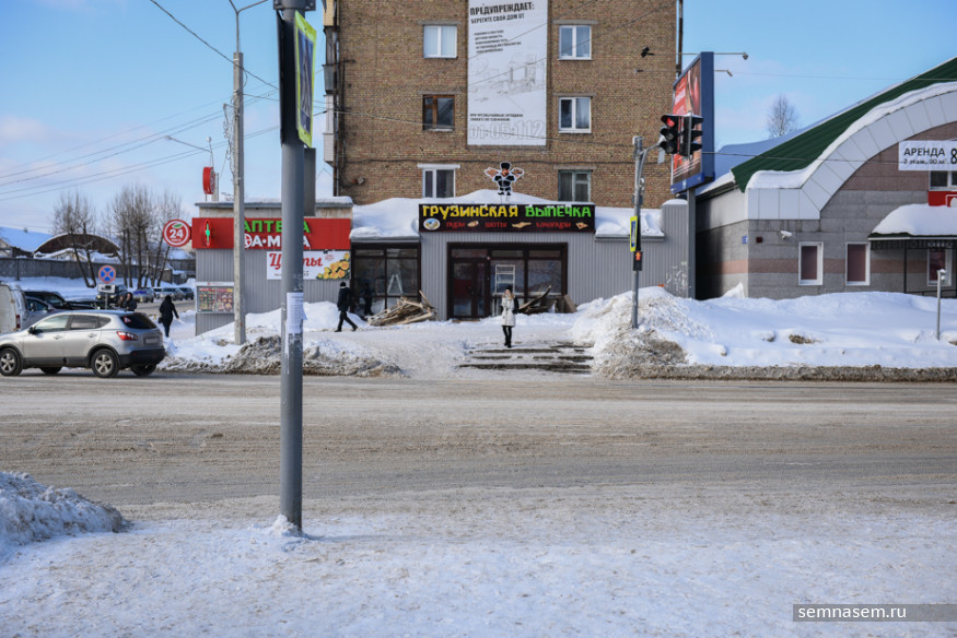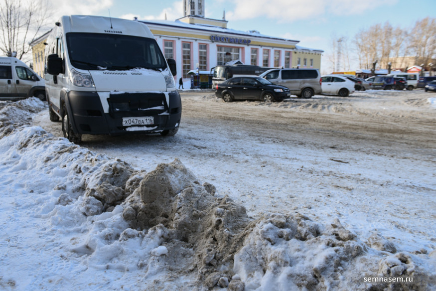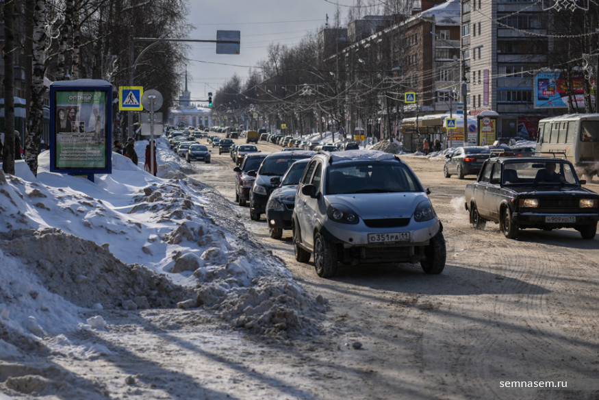 Из-за плотных снежных насыпей вдоль проезжей части Илья не может просто пересечь улицу Коммунистическую возле вокзала. Чтобы перебраться с нечетной стороны на четную, ему придется объезжать Привокзальную площадь, делая большой крюк.