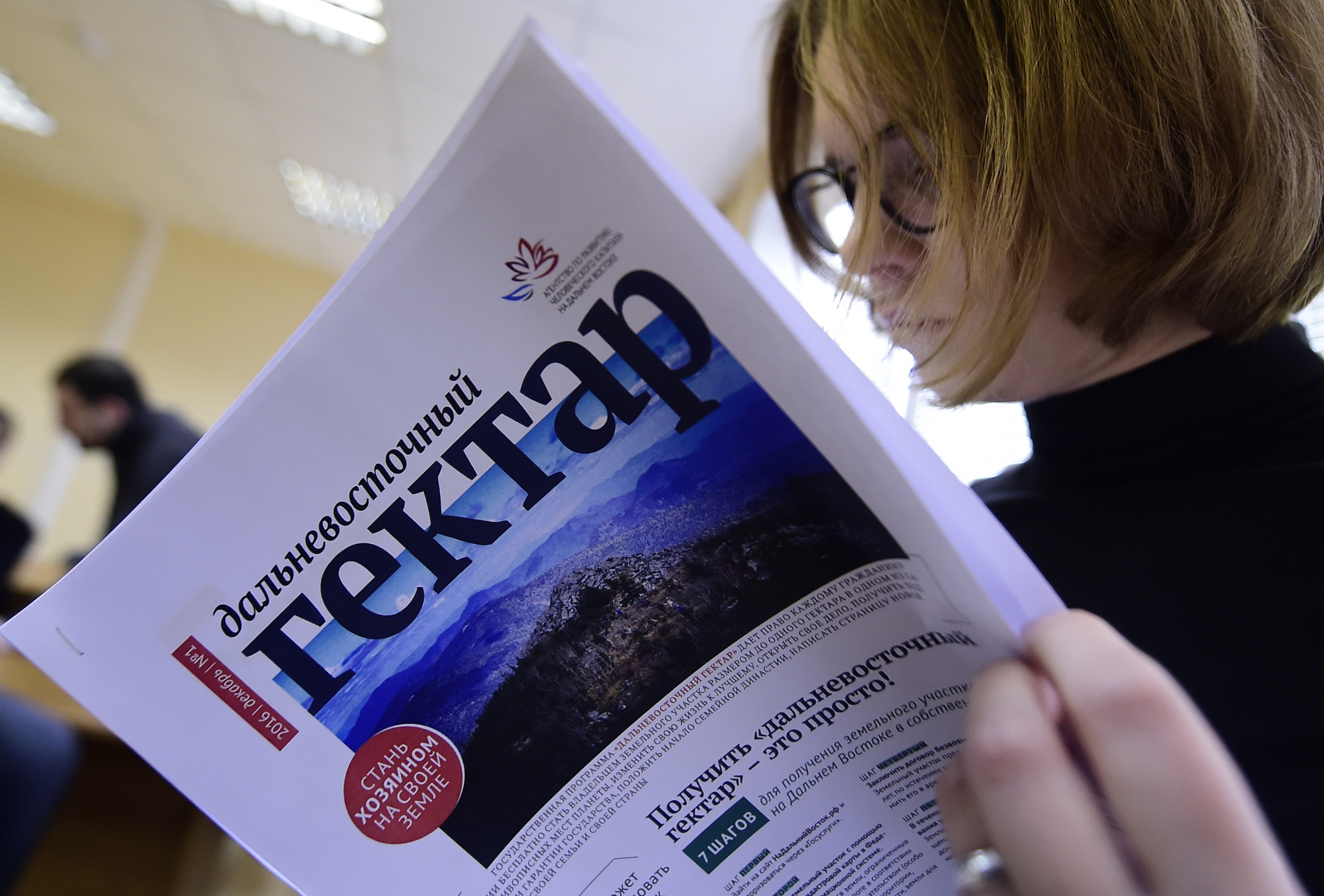 Брошюра в кабинете консультации по вопросу подачи заявлений на "дальневосточный гектар", архивное фото