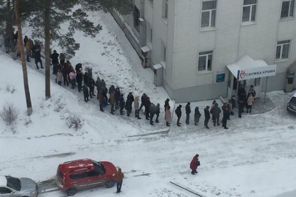 UPD (09:14 кем) Жители Кемерово выстроились в очередь перед Кемеровским областным центром крови — «Служба крови», сообщает Интерфакс. «Народу очень много. Всех, кто приходит — всех принимаем», — сообщил представитель центра. Вместе с тем он подчеркнул, что запас крови на сегодня достаточный. Фото: vk.com/auto42