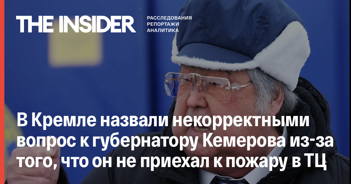 В Кремле назвали некорректными вопрос к губернатору Кемерова из-за того, что он не приехал к пожару в ТЦ