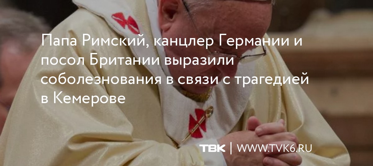Папа Римский, канцлер Германии и посол Британии выразили соболезнования в связи с трагедией в Кемерове