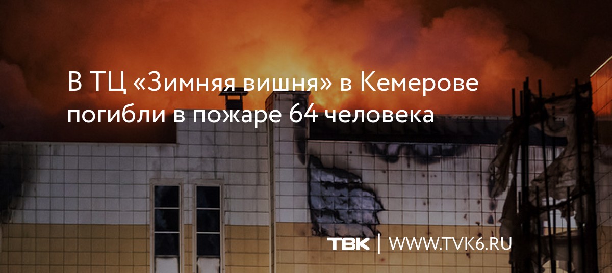 В ТЦ «Зимняя вишня» в Кемерове погибли в пожаре 64 человека
