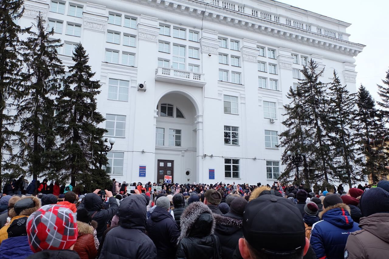 В Кемерово несколько тысяч человек пришли на митинг к зданию областной администрации. Они требуют от властей раскрыть данные о погибших при пожаре в ТЦ «Зимняя вишня». Многие считают, что официальные данные о 64 погибших занижены.