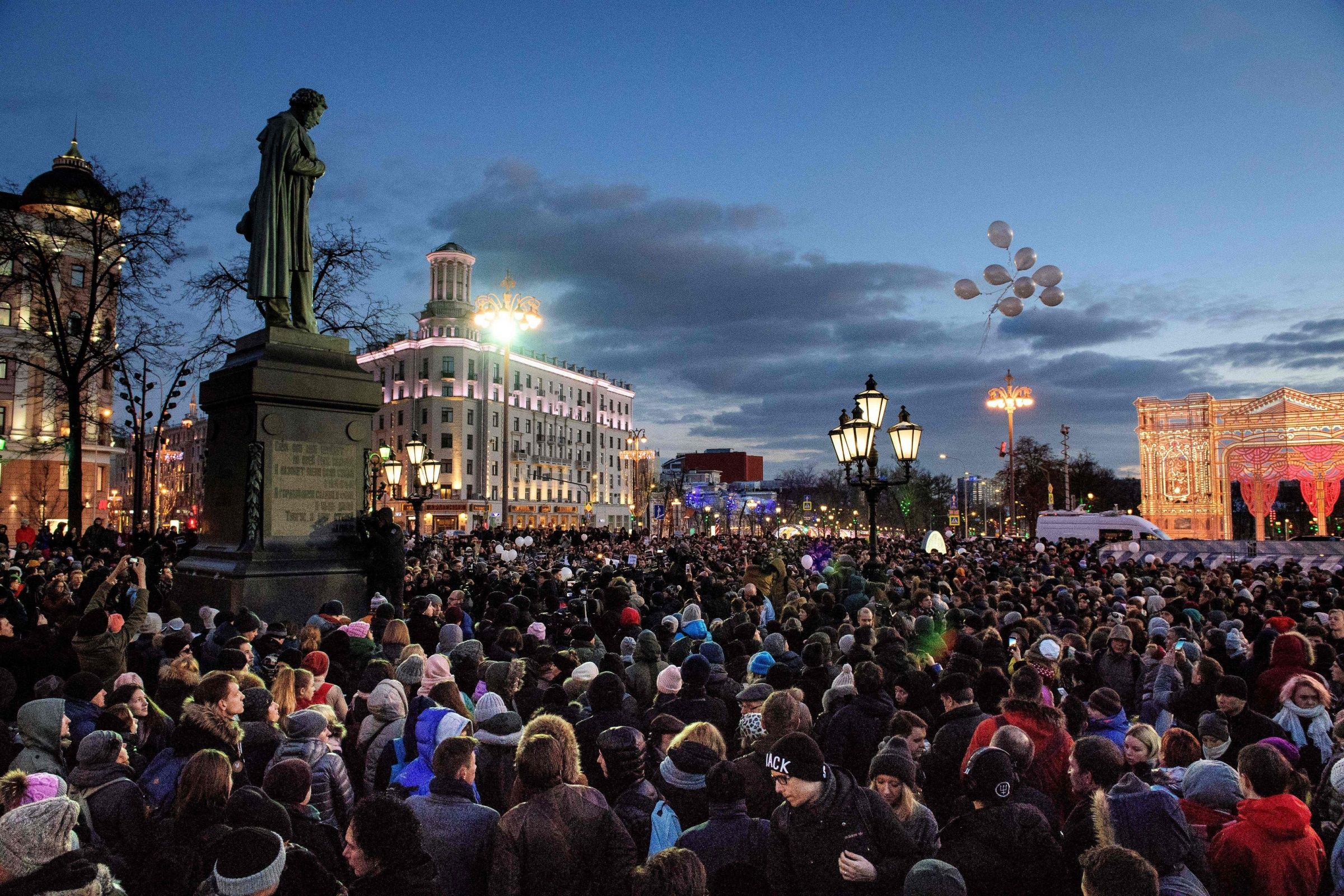 — На Пушкинской площади в Москве собрались по крайней мере несколько тысяч человек, полиция в акцию не вмешивается.