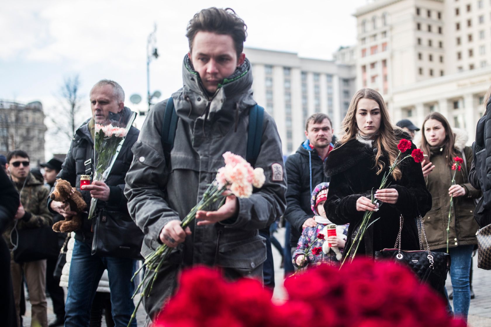Туристы из Азии не слишком хорошо понимали, зачем им дали гвоздики. Они стояли с цветами посреди Манежной площади, беспомощно озираясь. Вокруг с такими же гвоздиками ходили несколько сотен людей. В 17:00 вечера 27 марта в центре Москвы городские власти организовали акцию памяти погибших в пожаре в кемеровском торговом центре «Зимняя вишня».