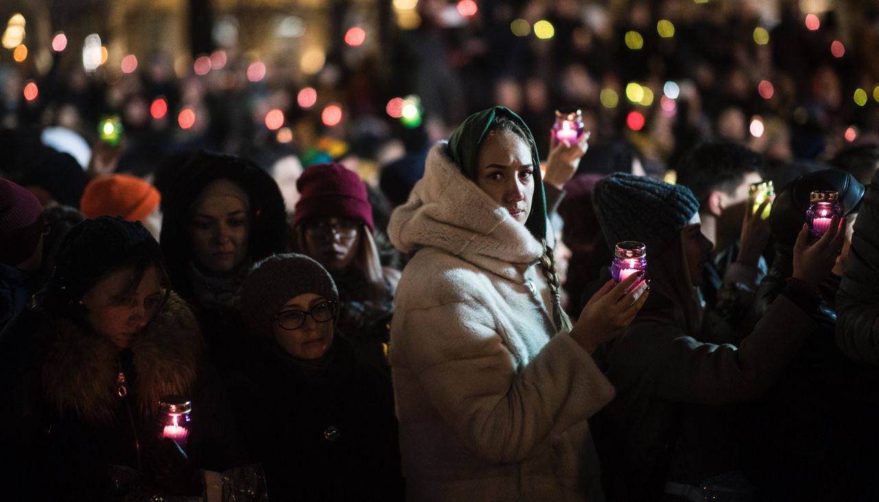 «Передавайте зажигалки», — попросили активисты. Вместе с зажигалками над головами стали передавать цветы. Кто-то раздавал черные листы с датой «25.03.18» и надписью «Помним», некоторые зажгли в руках церковные восковые свечи. В небо полетели белые шары. На какое-то время в толпе появились Алексей Навальный с женой Юлией, политики Григорий Явлинский и Дмитрий Гудков; они не давали комментариев и пытались раствориться в толпе.