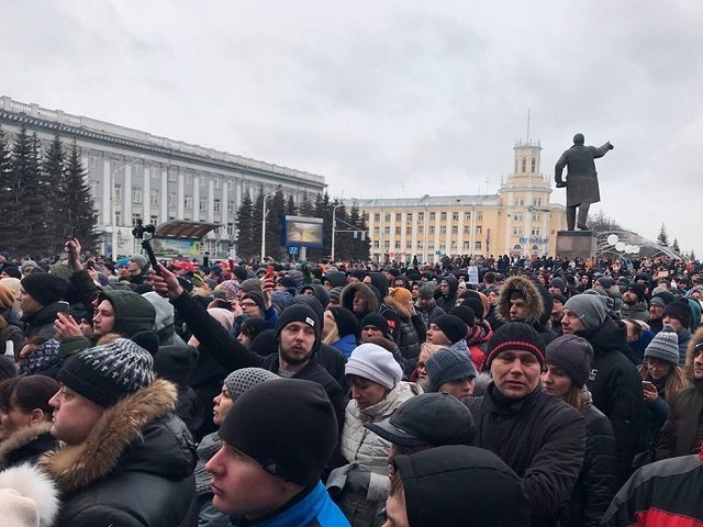 Несколько сотен жителей города Кемерово собрались у здания областной администрации, сообщает «Дождь». Горожане требуют достоверной информации о пожаре в торгово-развлекательном центре «Зимняя вишня», жертвами которого стали 64 человека.