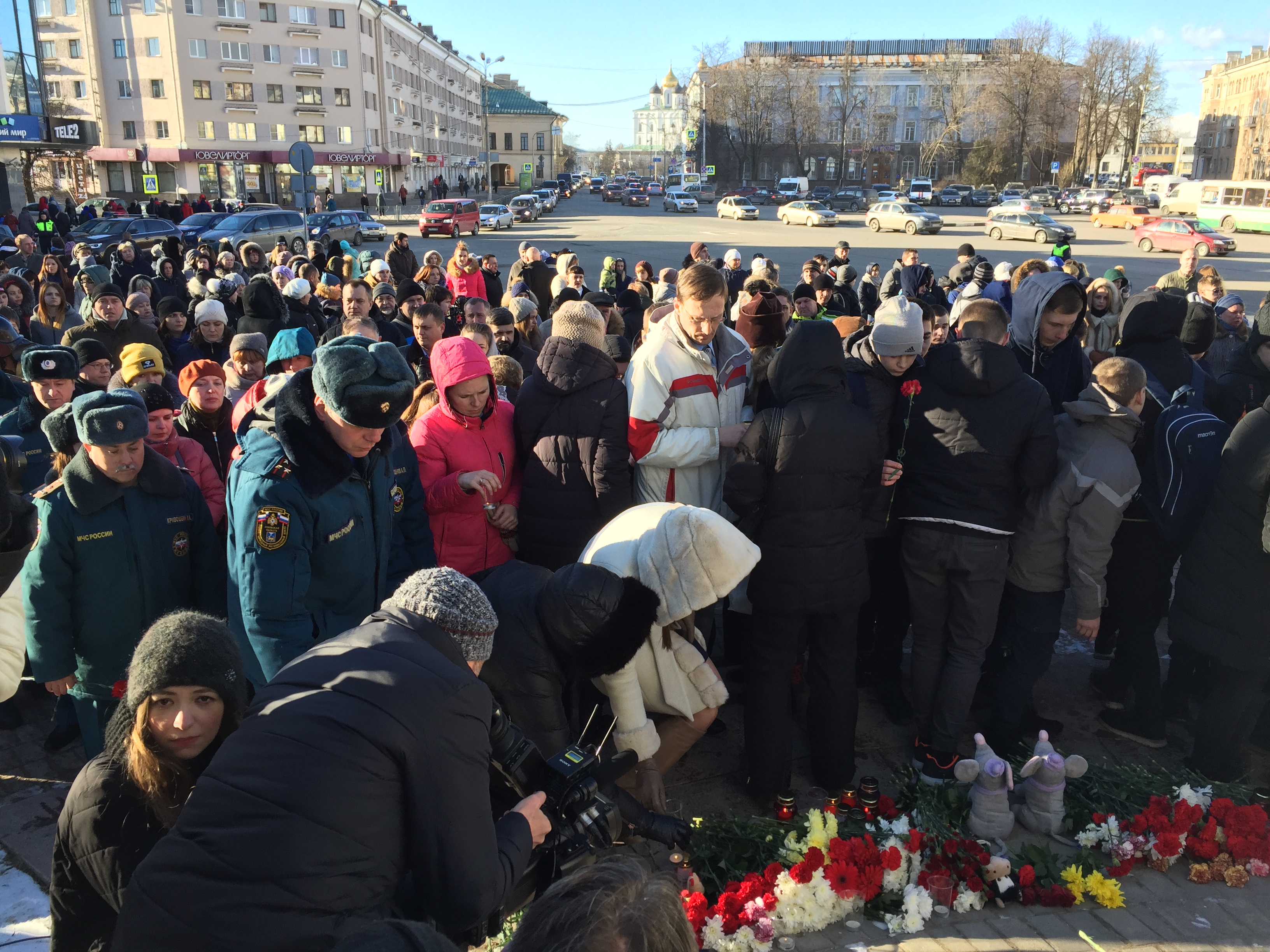 В Пскове траурные митинги в память погибших в Кемерове прошли 27 марта дважды. Утром с призывом прийти в 19:00 в местный гайд-парк через свой телеграм-канал обратился к гражданам оппозиционный политик Лев Шлосберг. Его поддержал псковский штаб Алексея Навального и пользователи социальных сетей.
