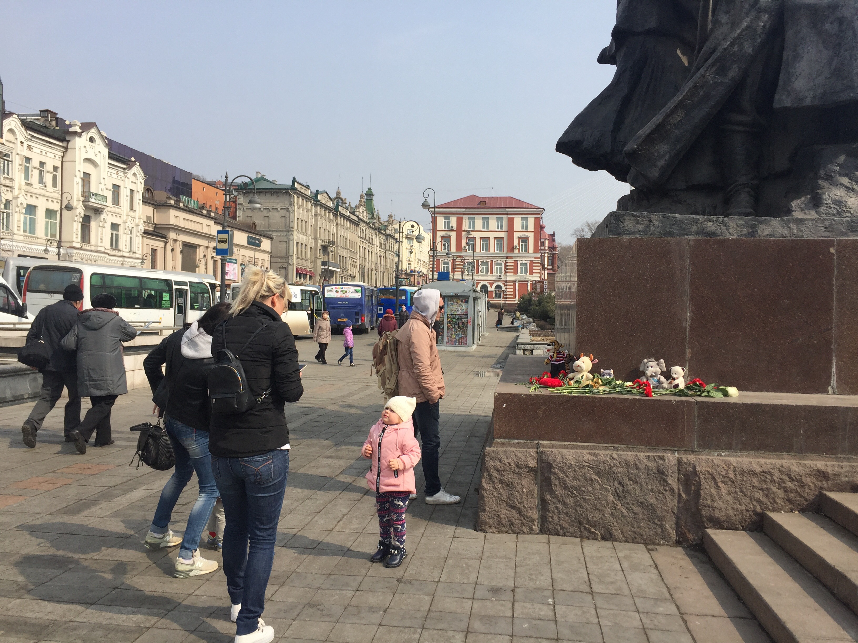 Жители приморских городов организовали мемориалы во Владивостоке и Уссурийске. К памятникам на центральных площадях несут мягкие игрушки и цветы. В 16:30 на центральной площади Владивостока прошло возложение цветов в память о погибших.